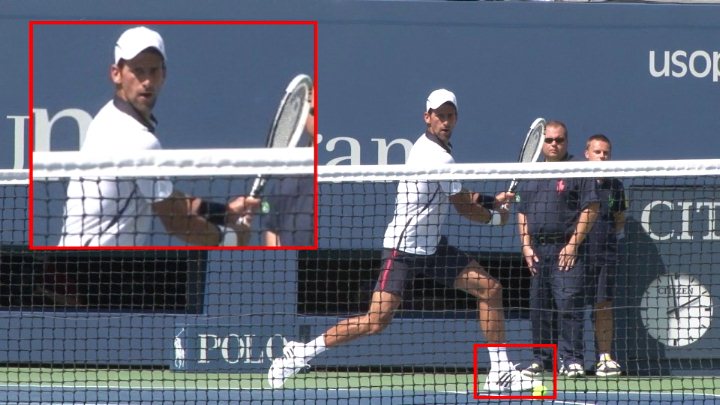 The third parameter for the return of serve is the ready position. Notice that Novak is in an athletic stance with his feet approximately twice his shoulder width apart. His wide stance and lower center of gravity provide the base for his explosive reaction to the serve.