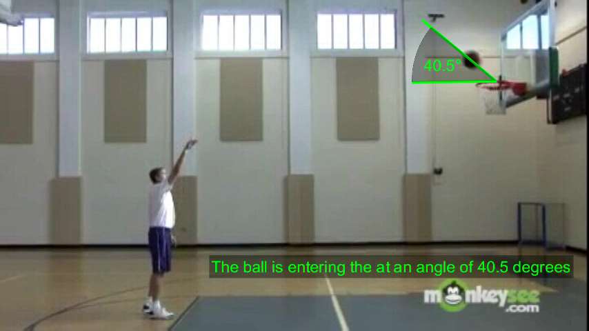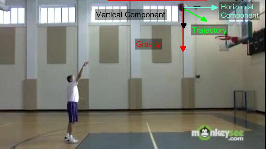 The trajectory can be broken up into a vertical and horizontal velocity component and can be used to determine the angle of the travejctory. The vertical component will only go up until the ball reaches the highest point.